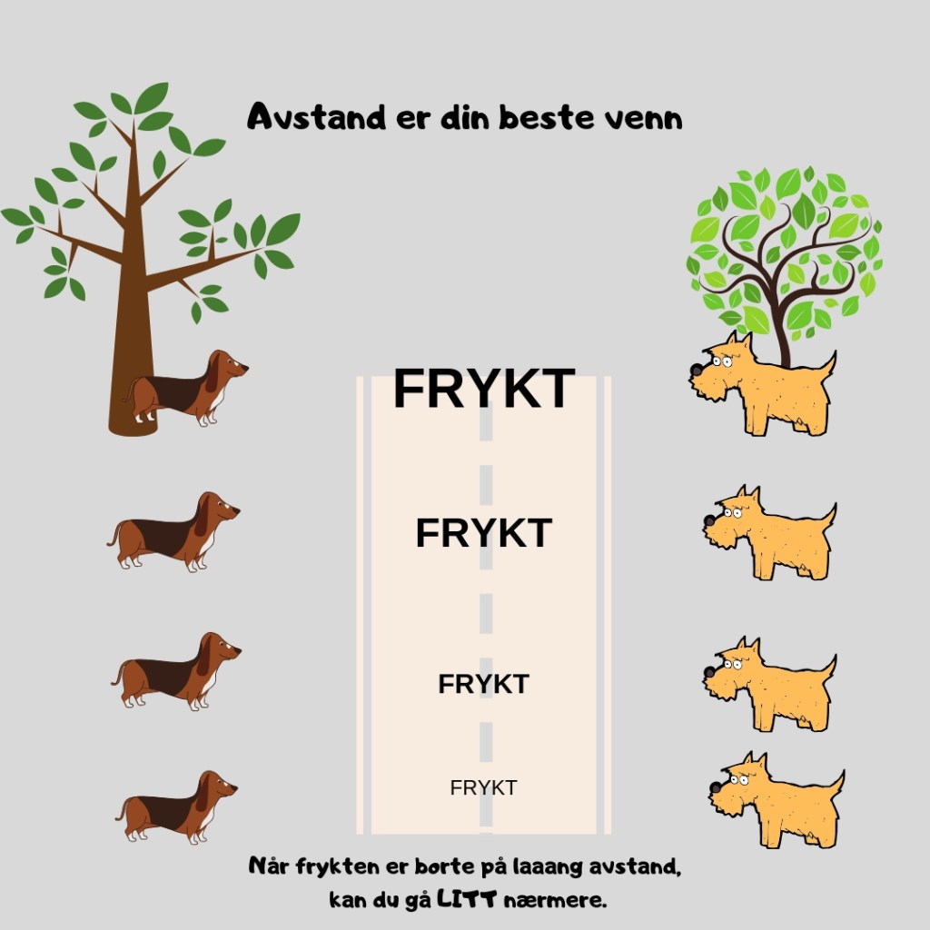 Husk: det er HUNDENS OPPLEVELSE av situasjonen som teller, ikke din! Hvor fort du kan gå frem styres av hundens opplevelse av situasjonen.