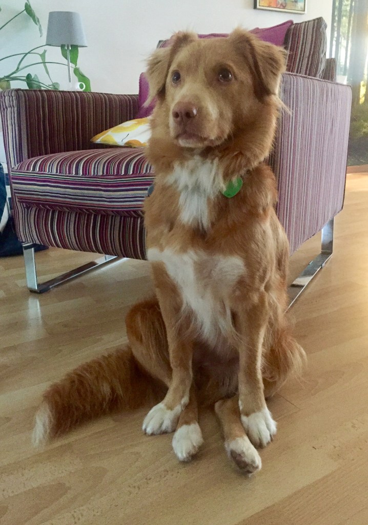 På det tidspunktet hadde jeg nettopp mistet min kjære Nemi, tolleren jeg hadde hatt de siste 12 årene, og jeg var egentlig litt i tenkeboksen når det gjaldt ny hund. Jeg var klar over at skulle jeg ha valp, så er det ca. 2 års ventetid på tollere. Dessuten var jeg ikke så helt klar for å ha valp i hus igjen, så dermed ble det åpent for omplassering også, men jeg skulle ta meg god tid. Finne den rette hunden. Ha litt «barnefri» etter nesten 13 år som «alenemamma» for Nemi… Men, tilfeldighetene ville det annerledes. 🙂